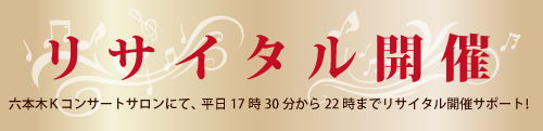 総合1位には六本木Kコンサートサロンにて、平日17時30分から22時までリサイタル開催サポート!