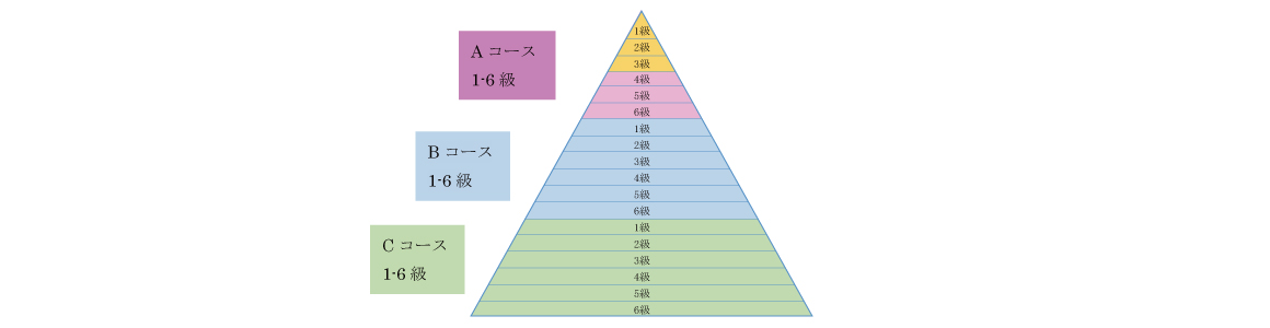 A,B,C3つのレベル別によるコースを作り、コース別の参考課題曲を定めております。